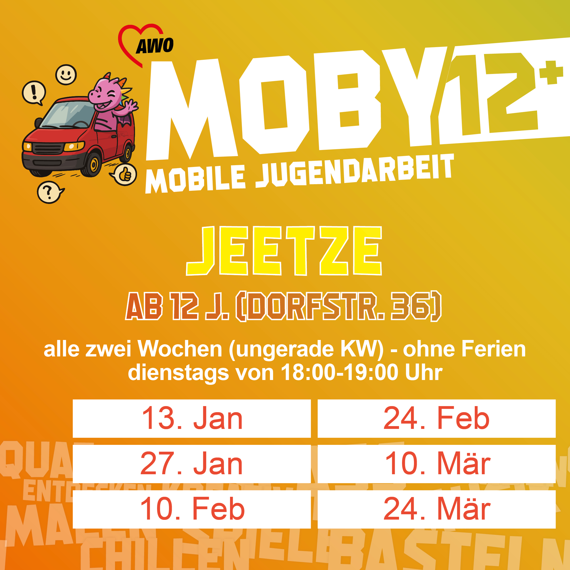 Was liegt an? Wir treffen uns – und dann geht es um eure Themen, eure Interessen und eure Ideen. Gemeinsam wollen wir herausfinden, was euch wichtig ist und was ihr braucht. Ob zusammen kochen, Projekte starten, Freizeitaktionen, Ausflüge oder einfach mal Zeit zum Reden – ihr gestaltet mit. Dabei stellen wir auch die Frage: Was braucht […]